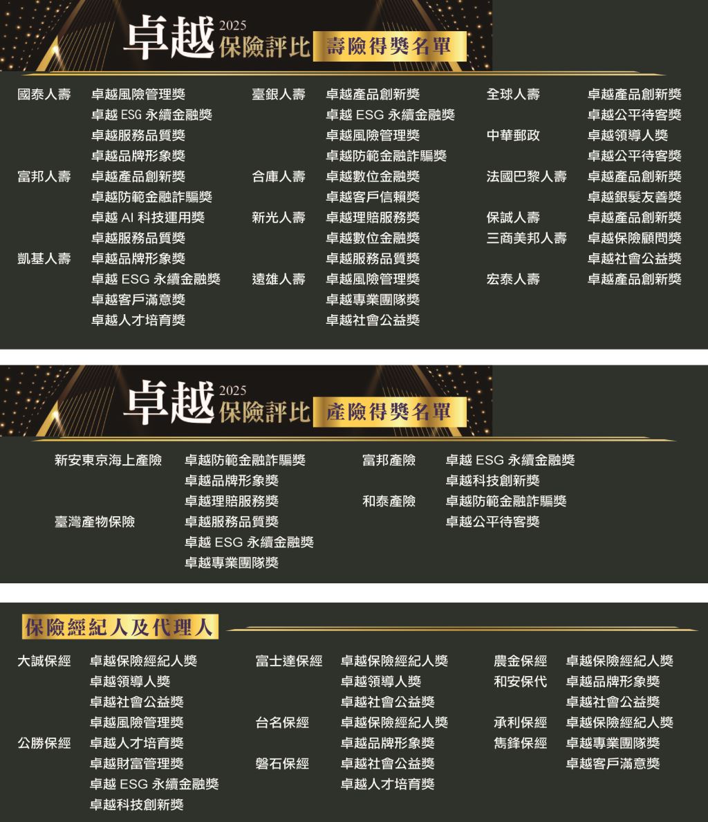 2025卓越保險評比獲獎企業名單