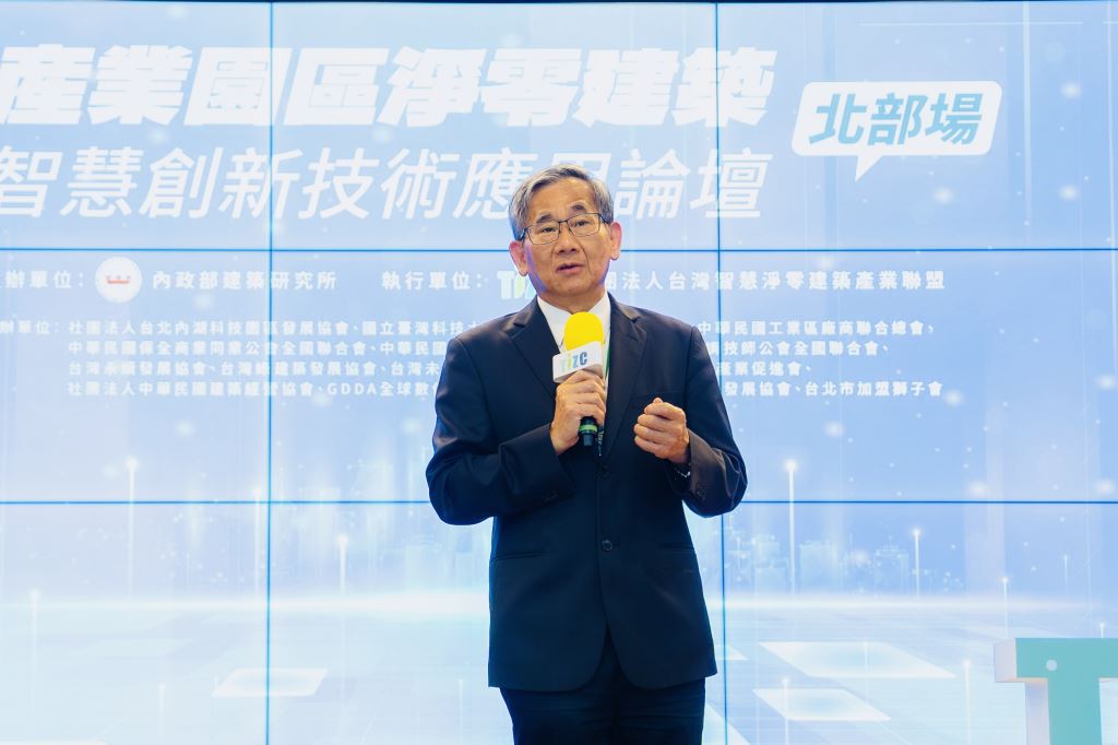 「產業園區淨零建築智慧創新技術應用論壇」北部場3日下午於內湖科技園區舉辦,內政部建築研究所王榮進所長親自到場致詞。