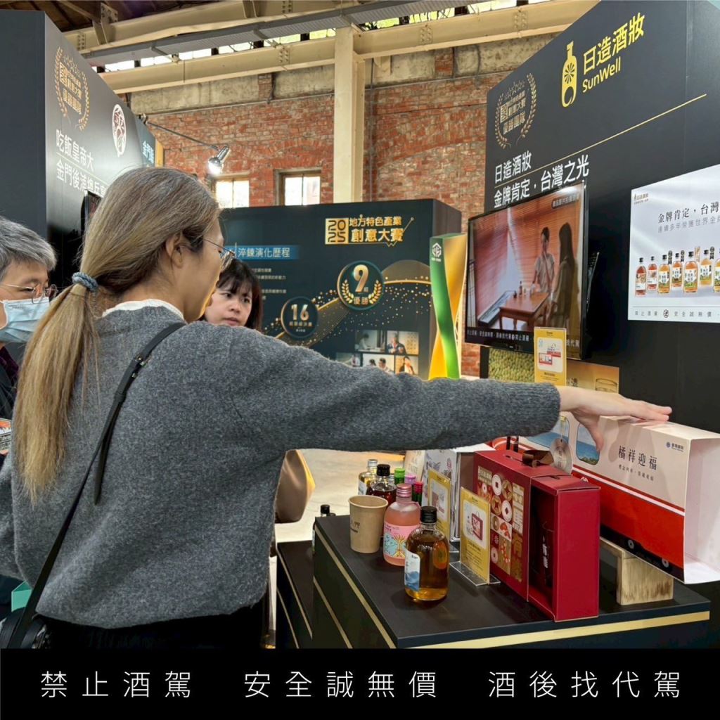 ▲日造酒妝榮獲地方特色產業創意大賽「產業高值組」大獎,於現場向民眾展示異業合作成果。