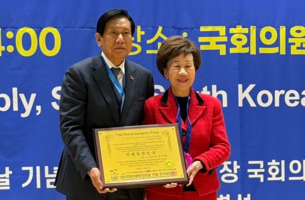 「UN 世界反貪腐日暨清廉公民獎頒獎典禮」近期(2025 年 12 月 20 日)於韓國首爾國會議員會館(國會議事大樓內)隆重舉行,來自政界、學界、宗教界與國內外公民團體代表齊聚一堂,共同紀念聯合國反貪腐公約精神,並向長期實踐清廉價值的個人與團體致敬。前副總統呂秀蓮獲獎應邀出席,並以得獎人身分發表致詞,用深具生命厚度的分享,成為全場關注焦點。