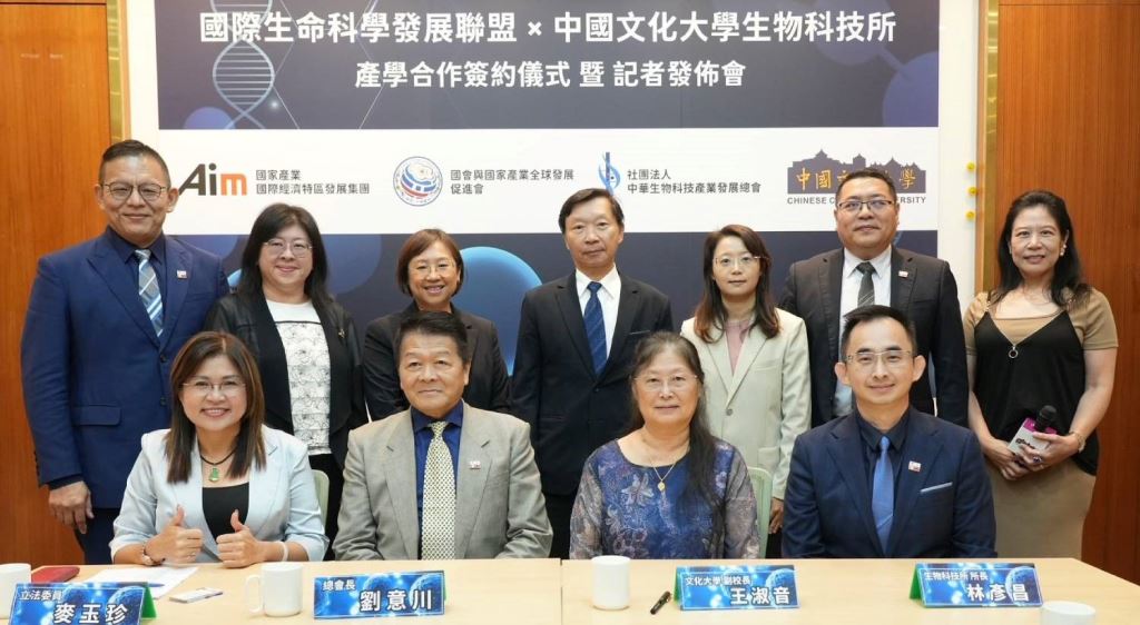 全球再生醫學與生命科學正快速崛起,為推動台灣醫學研究與產業升級,「國會與國家產業全球發展促進會」與「社團法人中華生物科技產業發展總會」共同輔導成立的「國際生命科學發展聯盟」,於10月27日上午假立法院研究大樓101會議室,與「中國文化大學生物科技研究所」正式簽署「產學合作意向書」(MOU),攜手推動再生醫學、AI醫療輔助技術與跨域創新,開啟台灣生命科學國際化新篇章。本次活動以「以人為本・創生未來」為主題,凝聚產、官、學、研、醫與媒體六大領域能量,結合AI智慧與臨床應用,推動尖端醫療研究、人才培育與產業標準建構。現場嘉賓雲集,共同見證這場具有里程碑意義的簽約儀式。