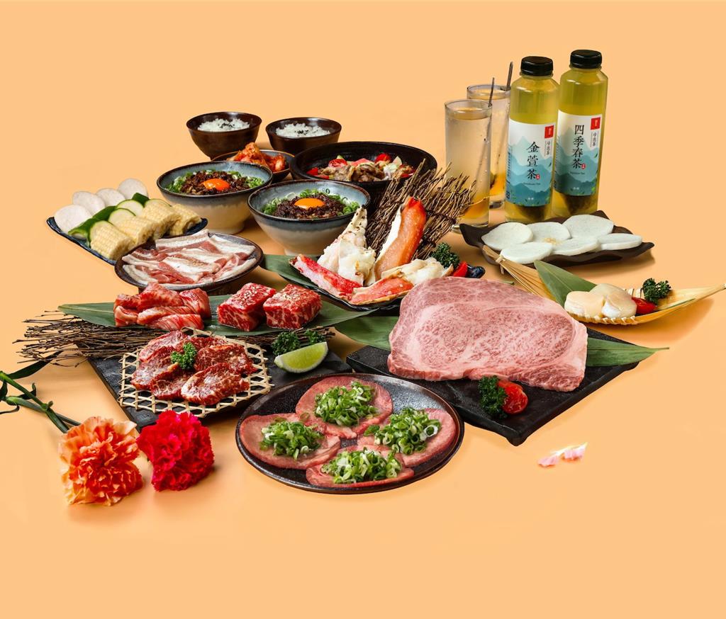 母親節女神套餐原價11,538元、優惠價9,000元,匯聚頂級燒肉食材包含日本A5和牛肋眼、和牛牛舌、和牛內橫膈膜及達拉斯等多款頂級肉品,並搭配炙燒干貝、梅汁鹹豬肉沙拉、日本山藥、和牛肉燥飯。凡選購此套餐,即免費加贈一份1,880元「大鱈場蟹腳」。