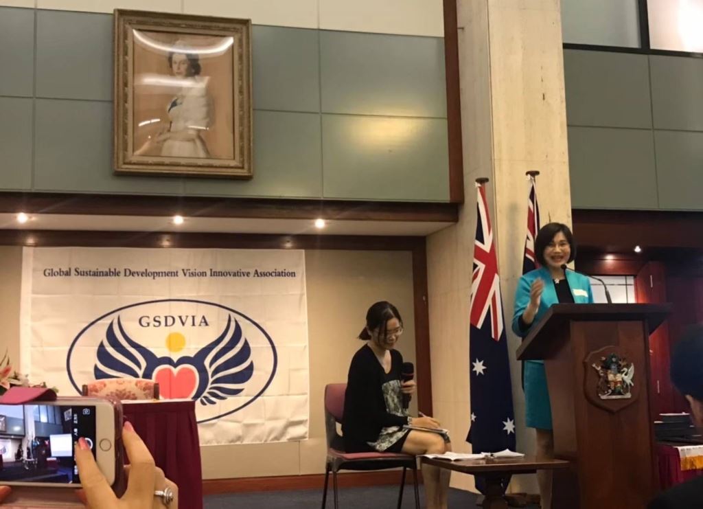 圖說:黃詠雪博士在澳洲布里斯本州議會演講。圖/中華全球蔬食協會提供