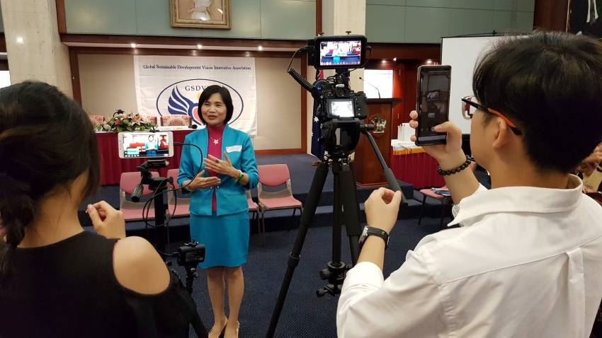 圖說:黃詠雪博士代表中華全球蔬食協會在澳洲布里斯本舉辦蔬食嘉年華論壇,接受媒體採訪報導。圖/中華全球蔬食協會提供