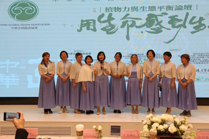 圖說:黃詠雪博士(左五)長年投入推廣蔬食運動,期望能用生命感動生命。圖/中華全球蔬食協會提供